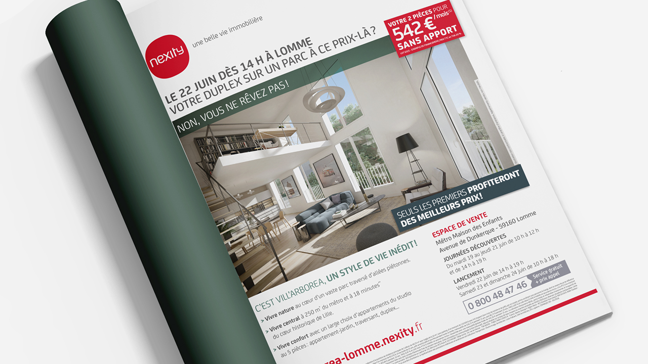 Nexity Apollonia a consulté Oo dans le cadre d’un lancement de quartier comptant 550 appartements à Lomme, ville résidentielle populaire et peu animée aux portes de Lille. La mission d’Oo ? Exprimer la transformation d’un environnement industriel en vaste projet immobilier symbolisant la naissance d’un nouveau quartier, verdoyant, novateur à proximité du métro. L’agence a donc conçu la communication opérationnelle autour de ce nouveau projet dont la première étape était la commercialisation de 140 logements.